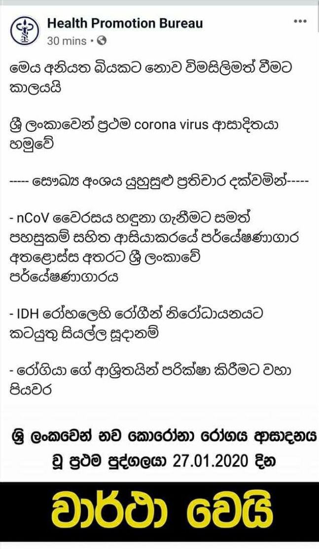 මේ මීට වසරකට පෙර සෞඛ්‍ය ප්‍රවර්ධන කාර්‍යංශය ඒ පිල්බඳව කළ නිවේදනයයි .