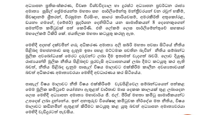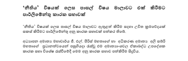 ‘නීතිය’ පාසල් විෂය නිර්දේශය ට ?