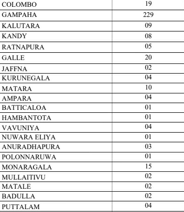 එම දිස්ත්රික්ක වලින් 20ටත් අඩු සංඛ්යාව ක් බැගින් වාර්තා වේ.