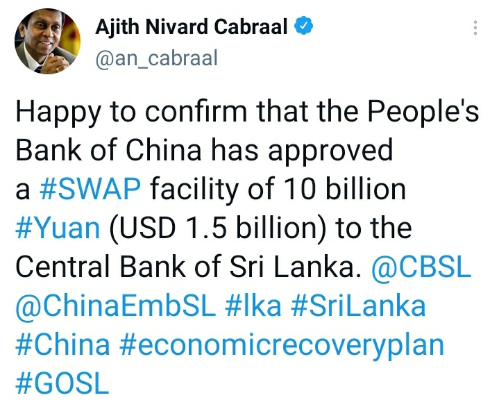 චීන මහජන බැංකුව විසින් ශ්රීලංකා ව සඳහා ෆොලර් බිලියන 1.5ක ණය මුදලක් ස්වැප් පහසුකම යටතේ අනුමත කර ඇතැයි රාජ්ය අමාත්යContinue Reading