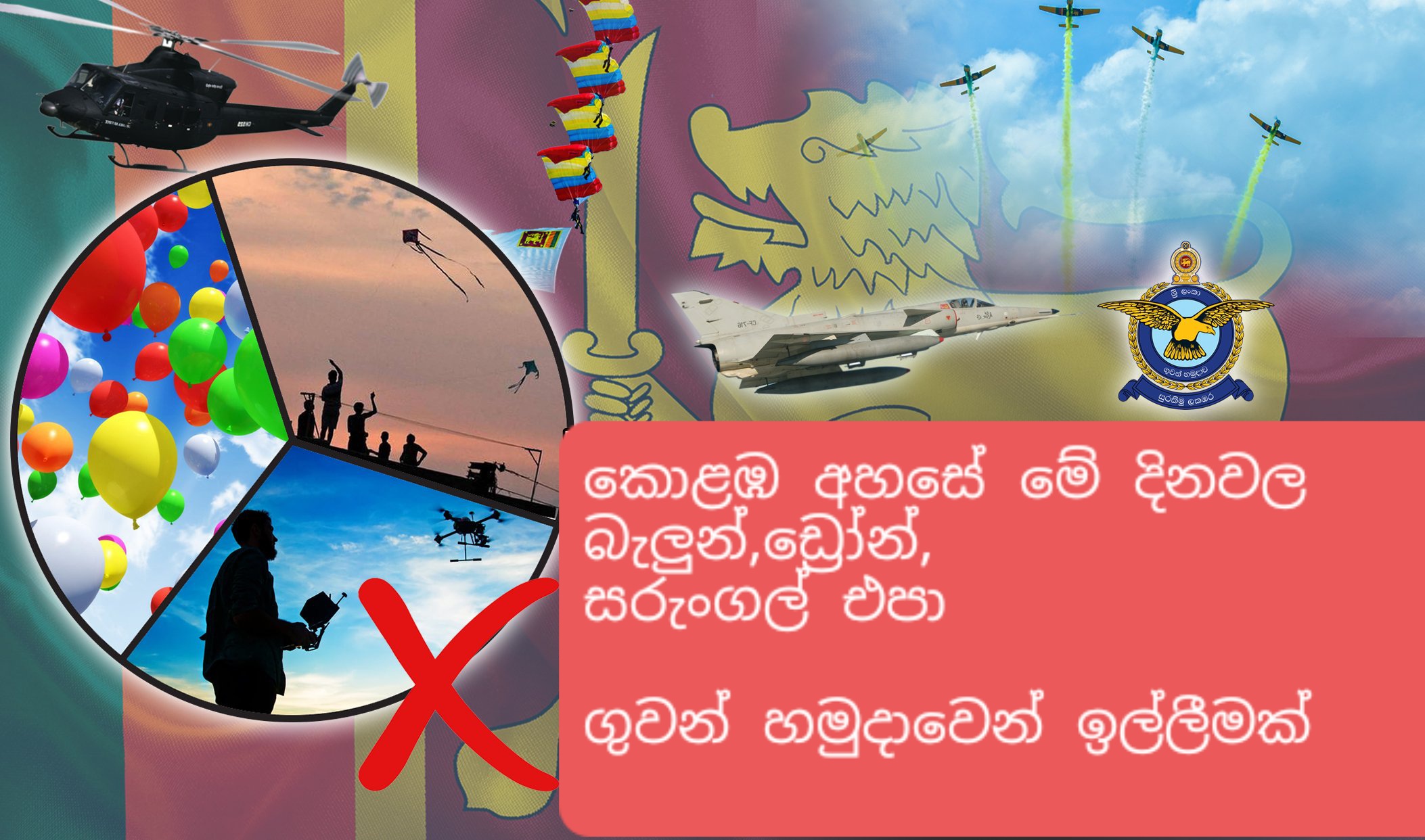 මේ දිනවලජාතික නිදහස් දින උළෙල වෙනුවෙන් ගුවන් යානා කොළඹ අහසේ වඩාත් පහළින් ගමන් කෙරෙන බැවින් ලබන 4වැනිදා දක්වා සැලකිල්ලෙන් පසුවනContinue Reading
